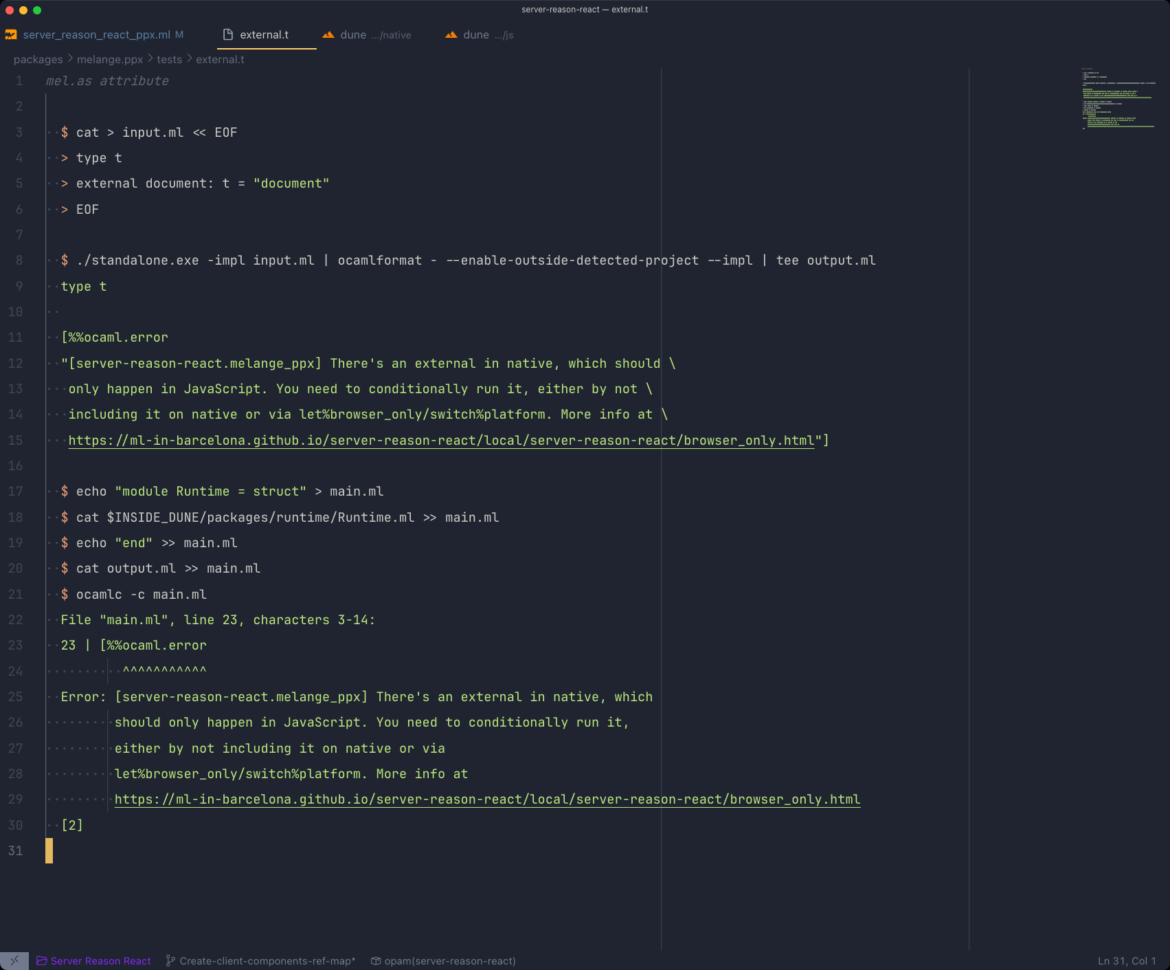 - reason-react-ppx ensures their ppx generation to be consistent, but also the JavaScript output: https://github.com/reasonml/reason-react/tree/main/ppx/test